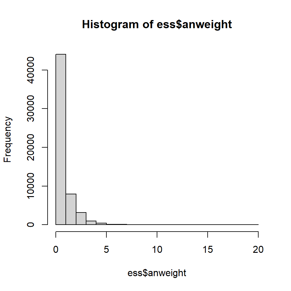 Wie wir die Gewichtung der Daten dann technisch in R umsetzten, sehen wir Teil vier. Zuvor schauen wir uns aber noch im Folgenden das zweite Beispiel an, den European Social Survey.
